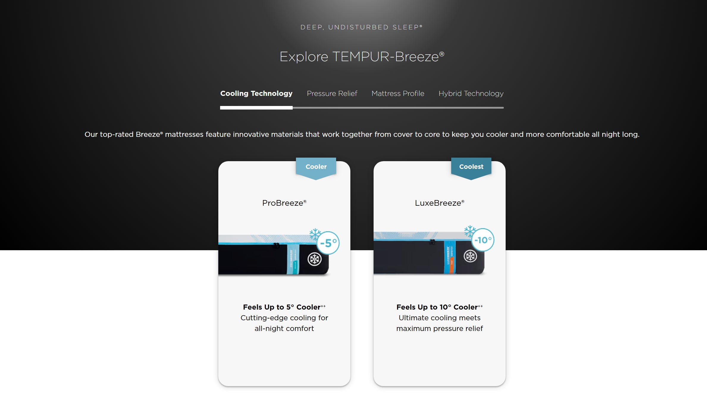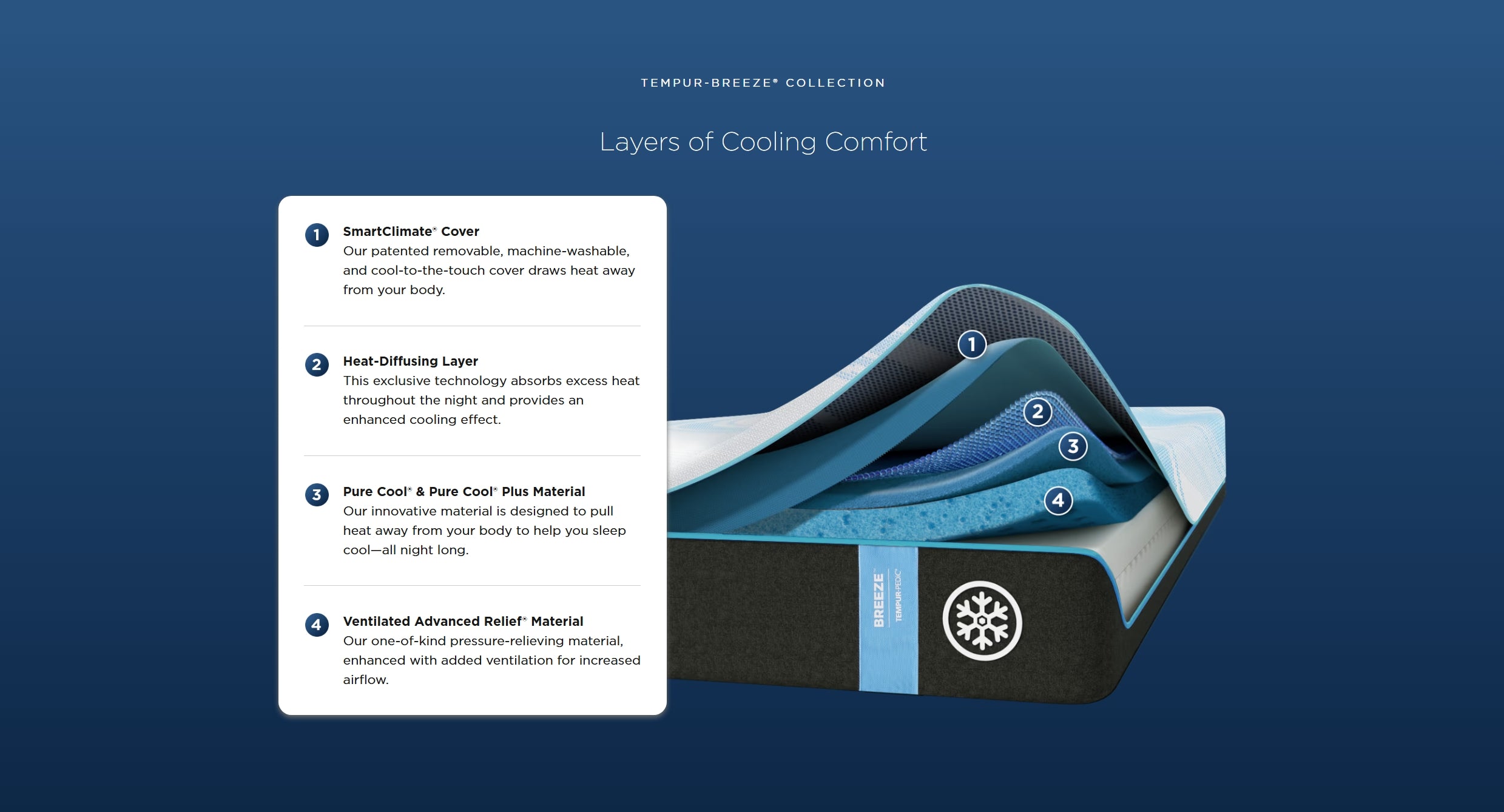 TEMPER-ActiveBreeze Climate Control TEMPUR-ActiveBreeze® Smart Bed Our most personalized sleep experience — feel up to 30° cooler or warmer,+++ all night long